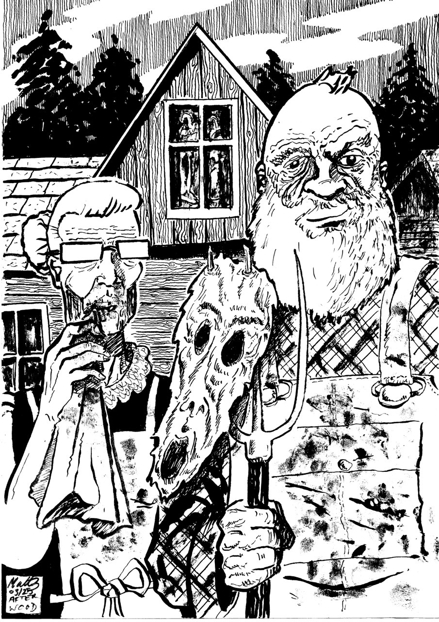 For this piece in the series, I have teamed up with the incredible artist Matthew Bunce. Matthew has taken inspiration from the ‘American Gothic’ by Grant Wood.